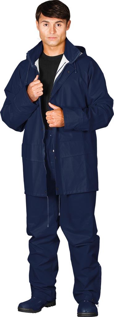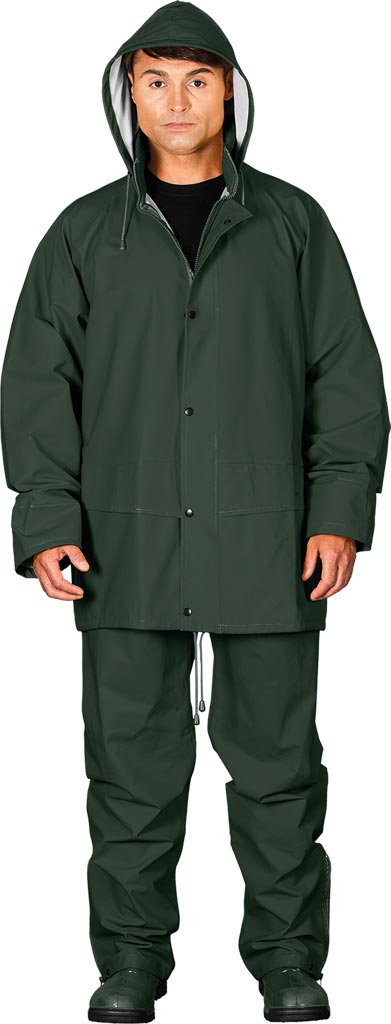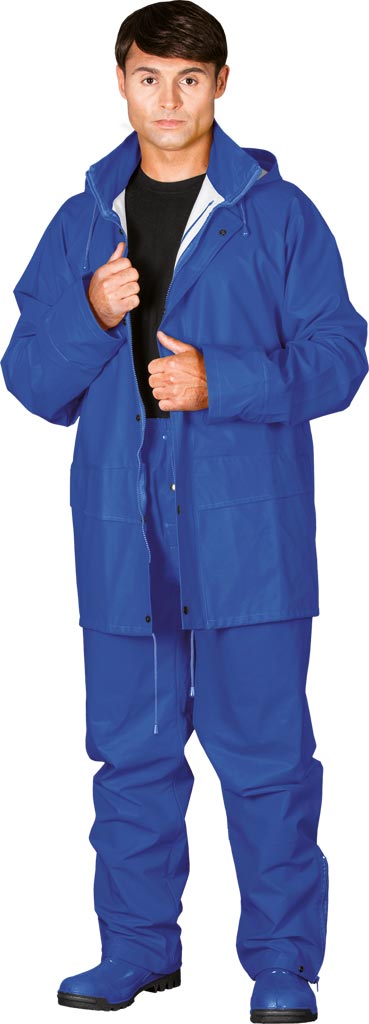 Wysokiej jakości komplet przeciwdeszczowy z elastycznego materiału o wysokiej wytrzymałości.