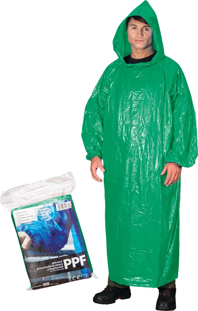 Płaszcz przeciwdeszczowy z kapturem.