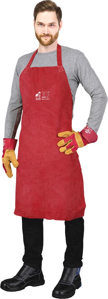Fartuch spawalniczy skórzany przedni, zakładany na szyję.